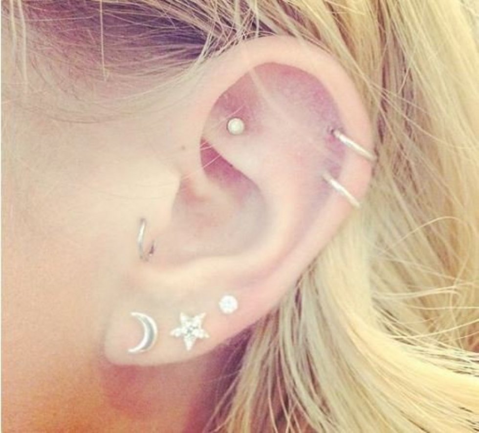 Studs, leaf, stars and moon charms in this ear piercing set. These double moons are a . Sun,moon and star piercing (18). Place the end of the hoop through the lower piercing and spiral, or roll, the hoop around so the end comes back around to the front. 100% brand new and high quality! Buy 18 styles stainless steel snake cartilage tragus earrings moon star crystal stud earring for women ear flat piercings. Be the first to hear about special offers and freebies! Requires two piercings no longer than 13mm apart. May 13, 2017 · leave a comment · moon & star double helix piercing. Constellation ear piercings have become a mainstay on the red carpet in. A blue moon inside the ear and a star above, the combination brings a great look. The end will then go . Moon & star double helix piercing.